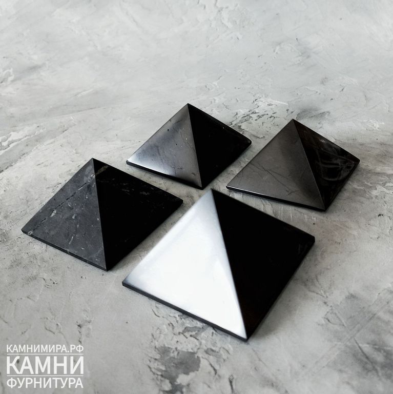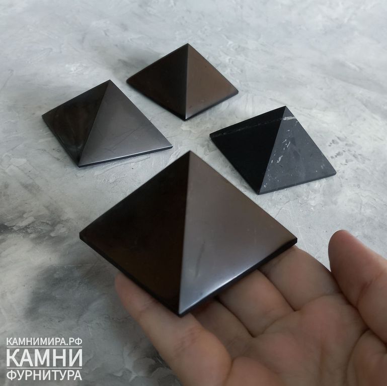 Пирамиды из натурального шунгита (мстр.Карелия) с пиритом размеры в ассортименте