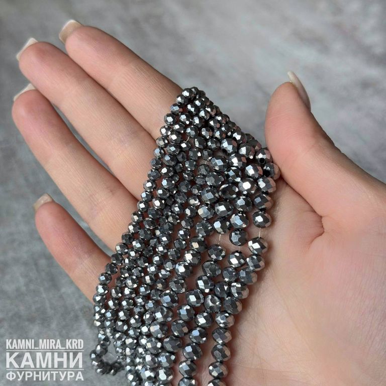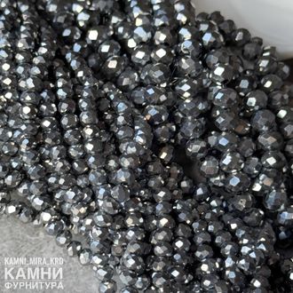 Стеклянные рондели в огранке 4х3/4х6 мм, цвет серебрянный непрозрачный