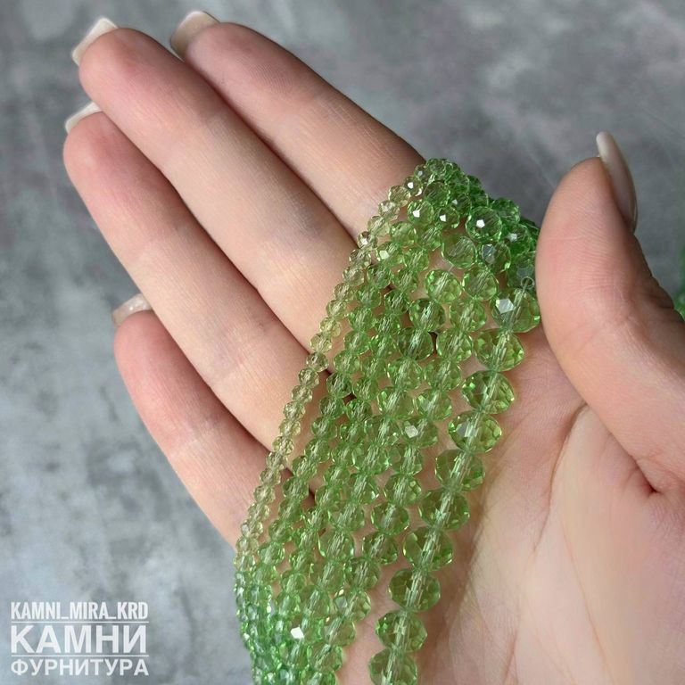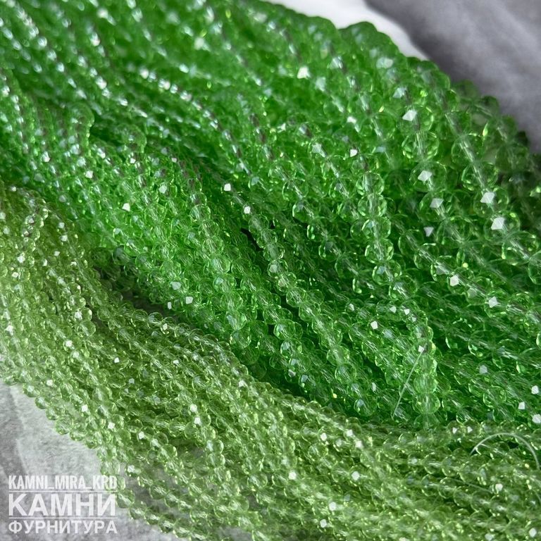 Стеклянные рондели в огранке, цвет салатовый