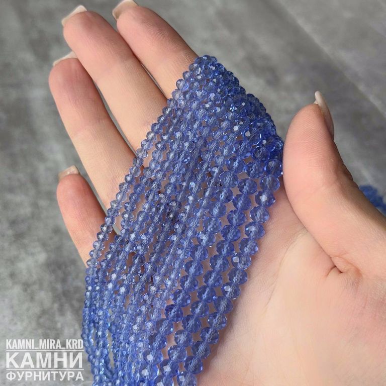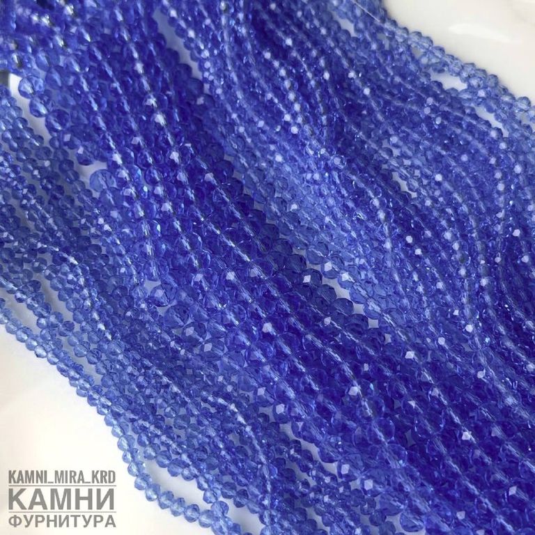 Стеклянные рондели в огранке, цвет синий