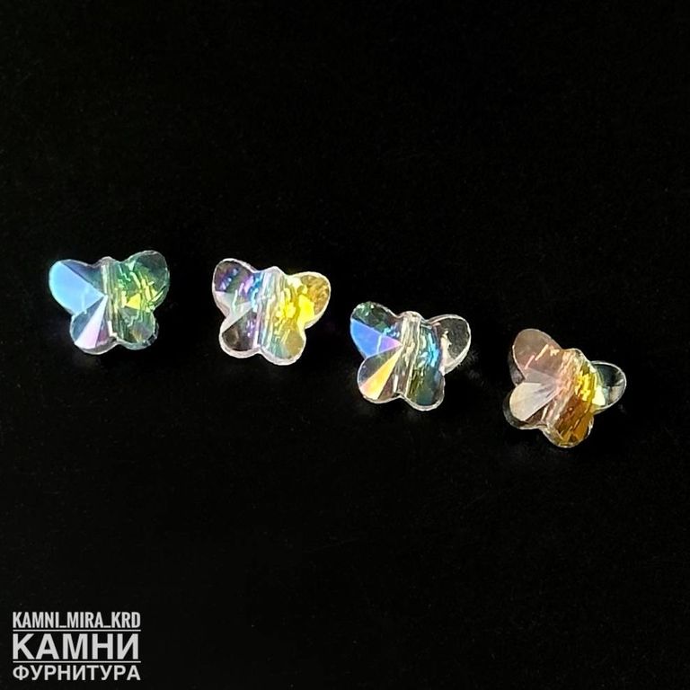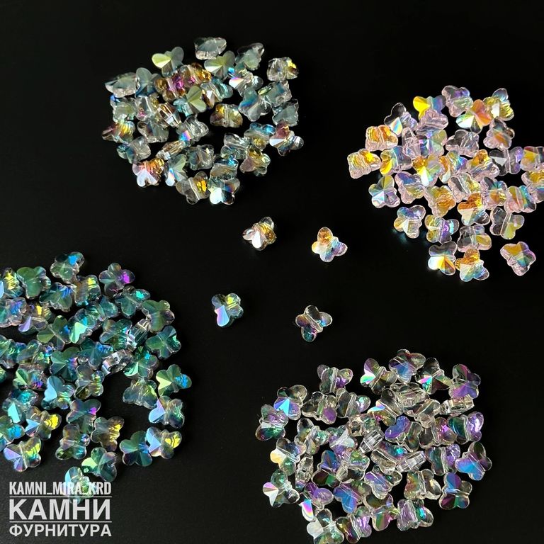 "Бабочка" стеклянная бусина с голографикой 7,7х9,8 мм, вид в ассортименте