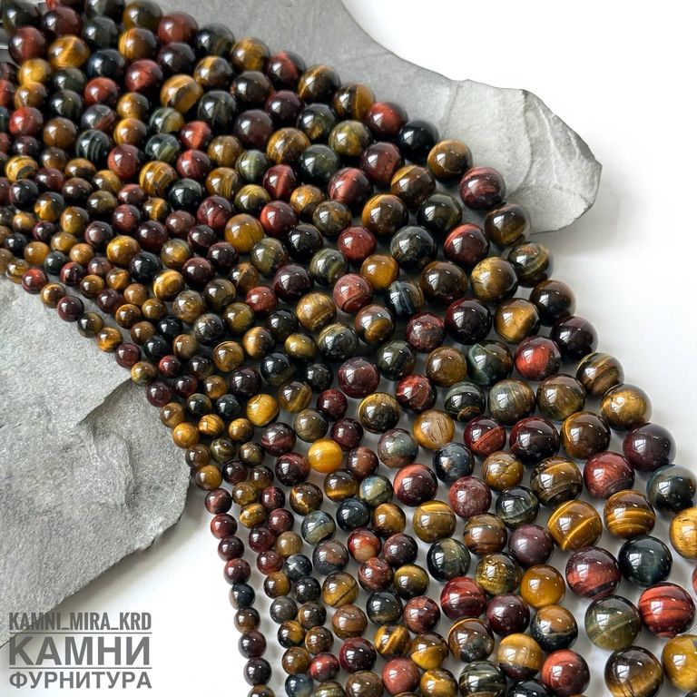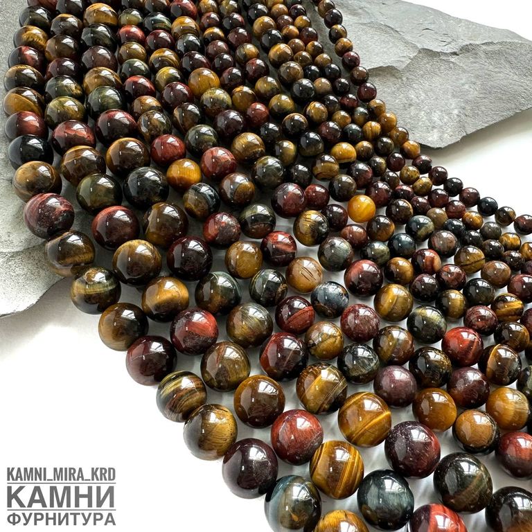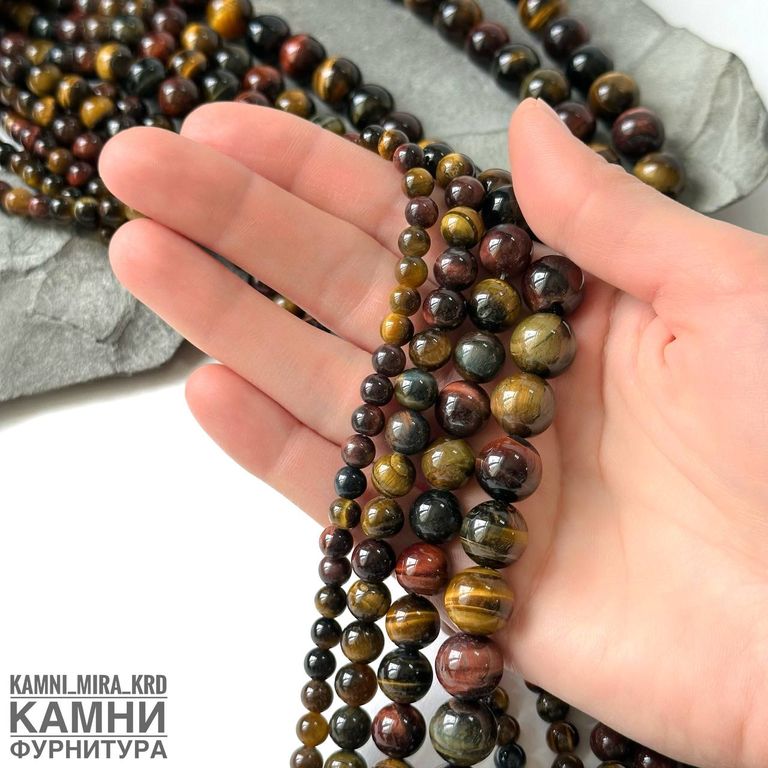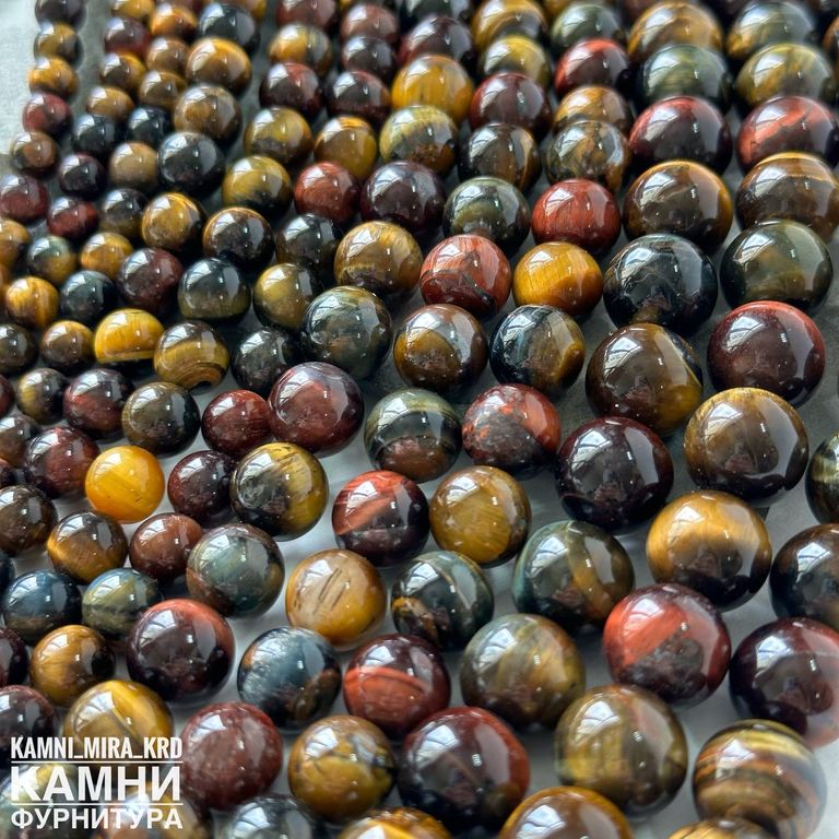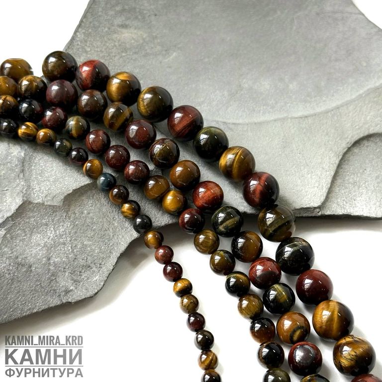 Тигрово-соколиный-бычий глаз, качество 3А, шары 6,1-6,5/8-8,4/10,2-10,6/12,2-12,7 мм. Бычий глаз облагорожен нагреванием
