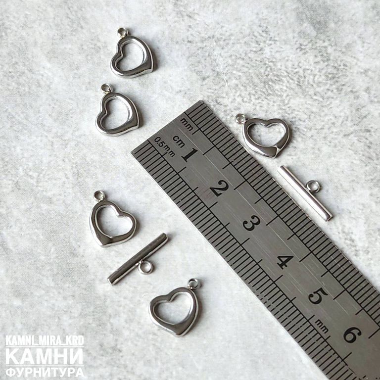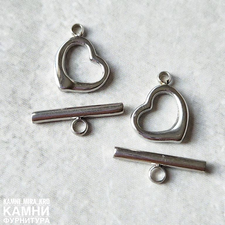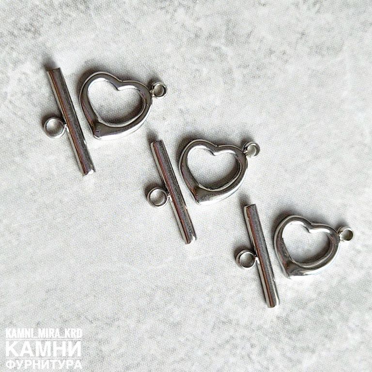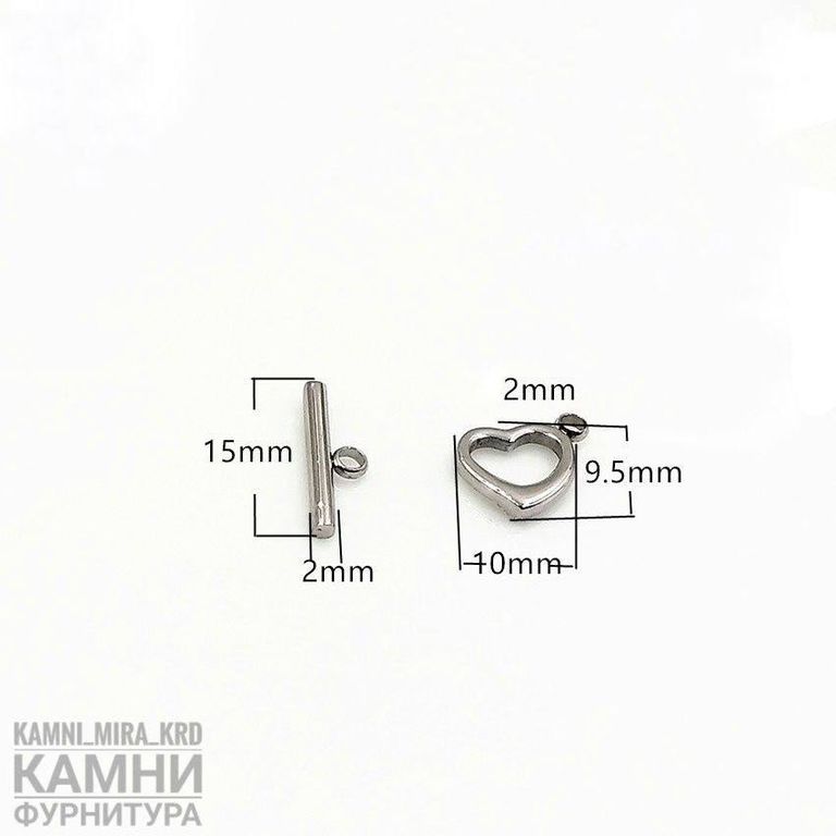 Тогл "Сердечко" ЛЮКС 10х15 мм, нержавеющая сталь (код 1669)