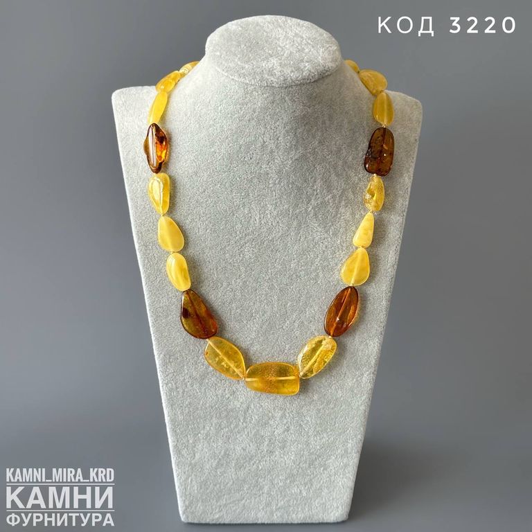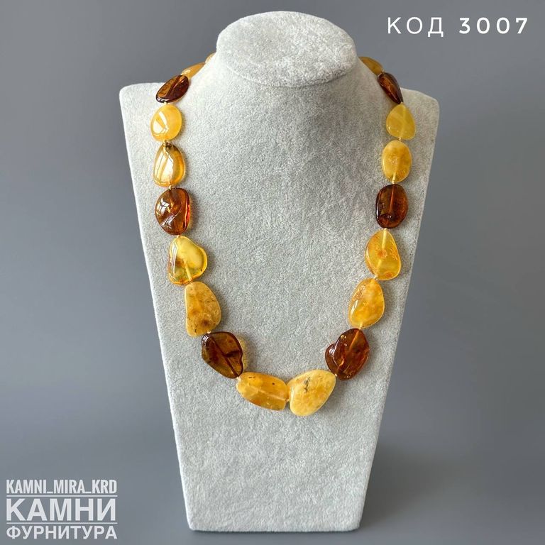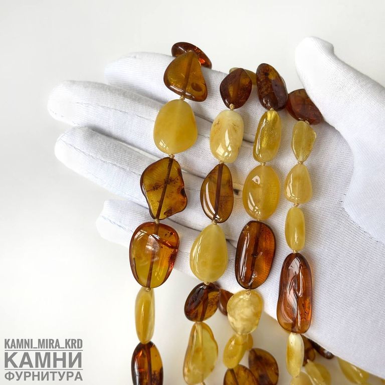 Микс "Медовый и коньячный" нить около 50 см (бусины разные: мельче-крупнее, широкие-узкие бусины от 20 до 24 штук, янтарь природный с раковинками, сеточками, трещинками)