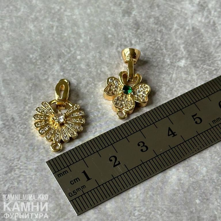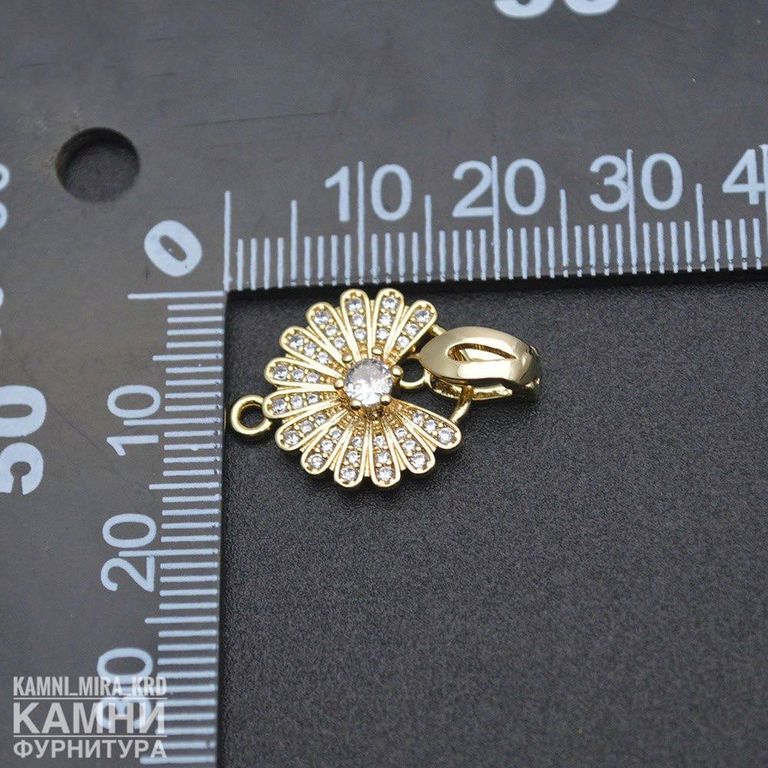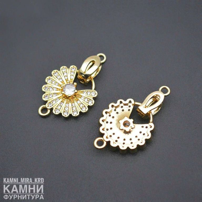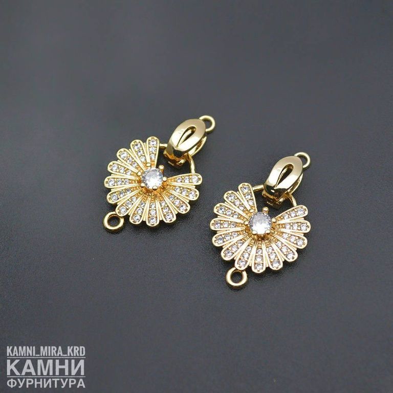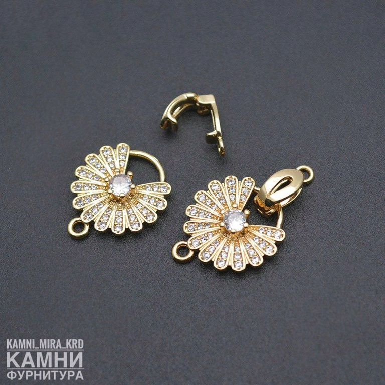 Замочки ЛЮКС со стразами, позолота 18К "Ромашка" 25х15 мм (код 3352)